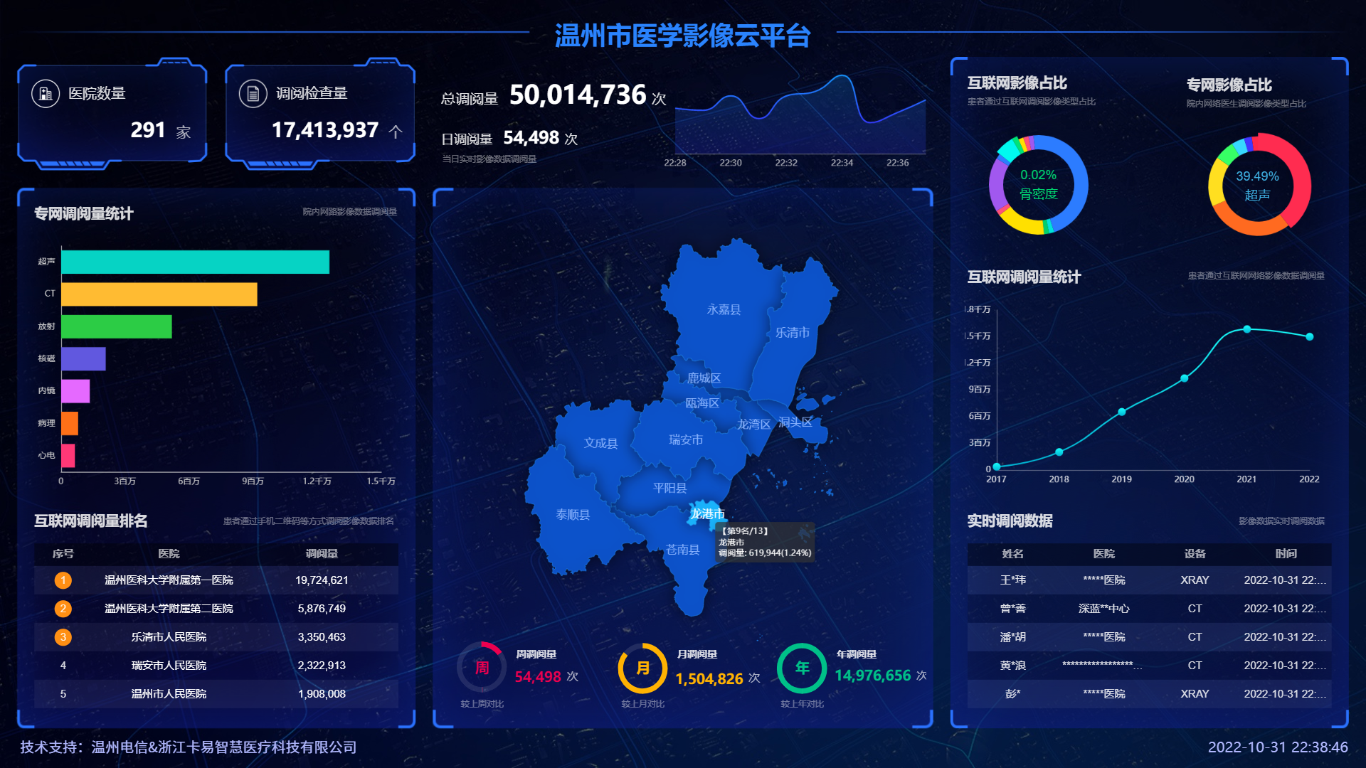 浙江省內(nèi)最大云影像平臺(tái) 日均移動(dòng)調(diào)閱量7.5萬(wàn)次 平臺(tái)總調(diào)閱量超過一億次 2018年浙江省醫(yī)療衛(wèi)生服務(wù)領(lǐng)域“最多跑一次”改革十佳案例(影像云唯一)